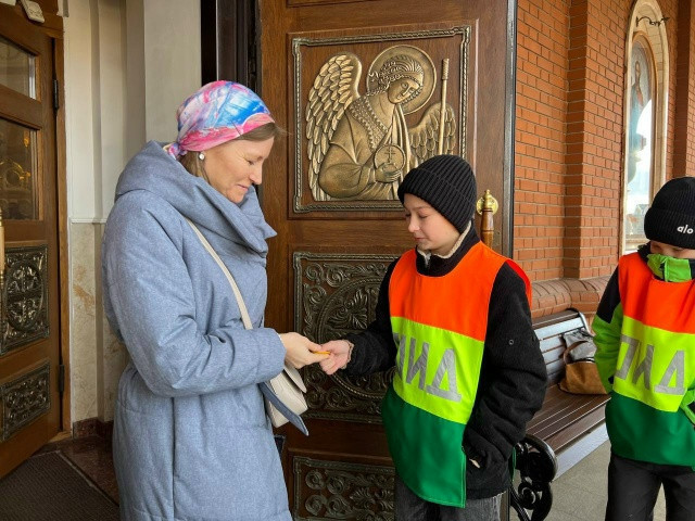 ✨После службы дети обратились к прихожанам с просьбой строго соблюдать дорожные правила и подарили световозвращающие элементы.