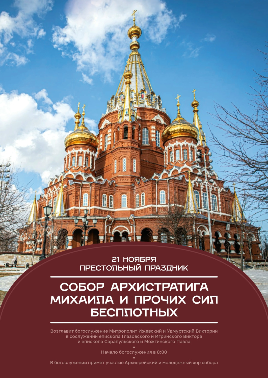 Возглавит богослужение Митрополит Ижевский и Удмуртский Викторин в сослужении епископа Глазовского и Игринского Виктора и епископа Сарапульского и Можгинского Павла.