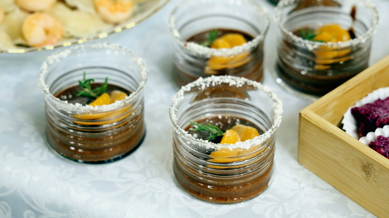 Участники праздника смогли увидеть и попробовать настоящие кулинарные находки. Среди них традиционные блюда в новом прочтении: оливье с тунцом и с креветками на постном майонезе, пельмени со щукой и с креветками, заливное из судака.