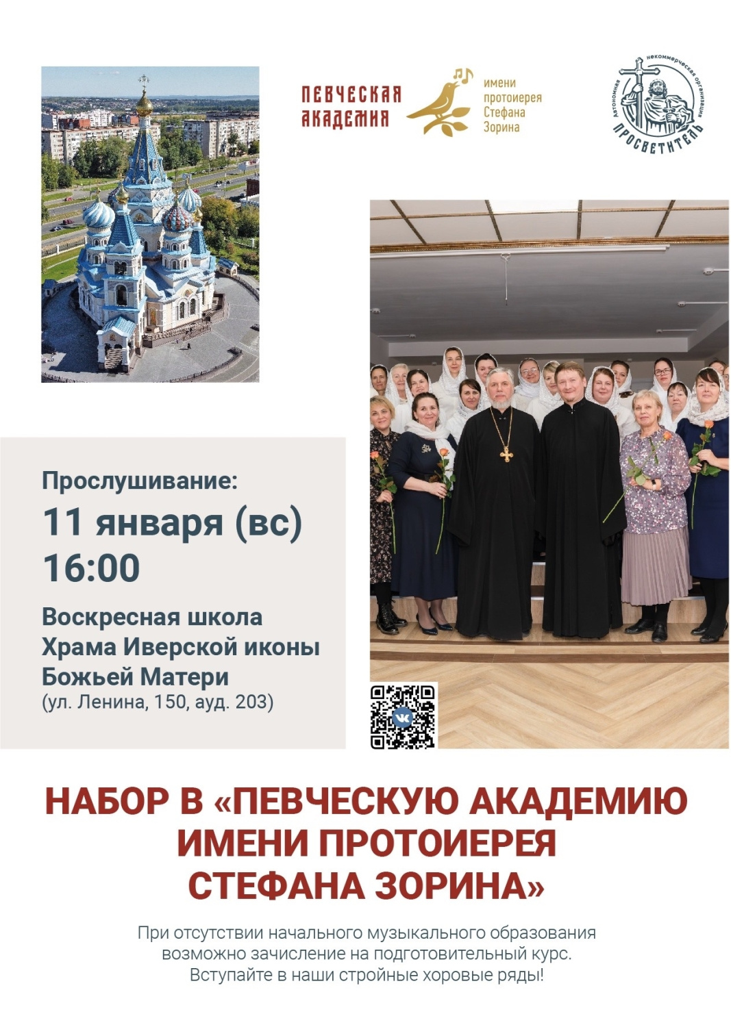 Прослушивание состоится 11 января в 16.00 в здании Воскресной школы Иверского храма.