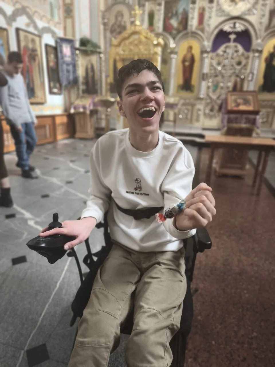 Да, эти дети не замирают в тишине храма. В новой обстановке они бывают активны, они живут здесь и сейчас искренне, без масок. Но в этом, казалось бы, хаотичном движении незримо разлита настоящая благодать, которая покрывает всех: и священников, и помощников, и самих участников Таинства.