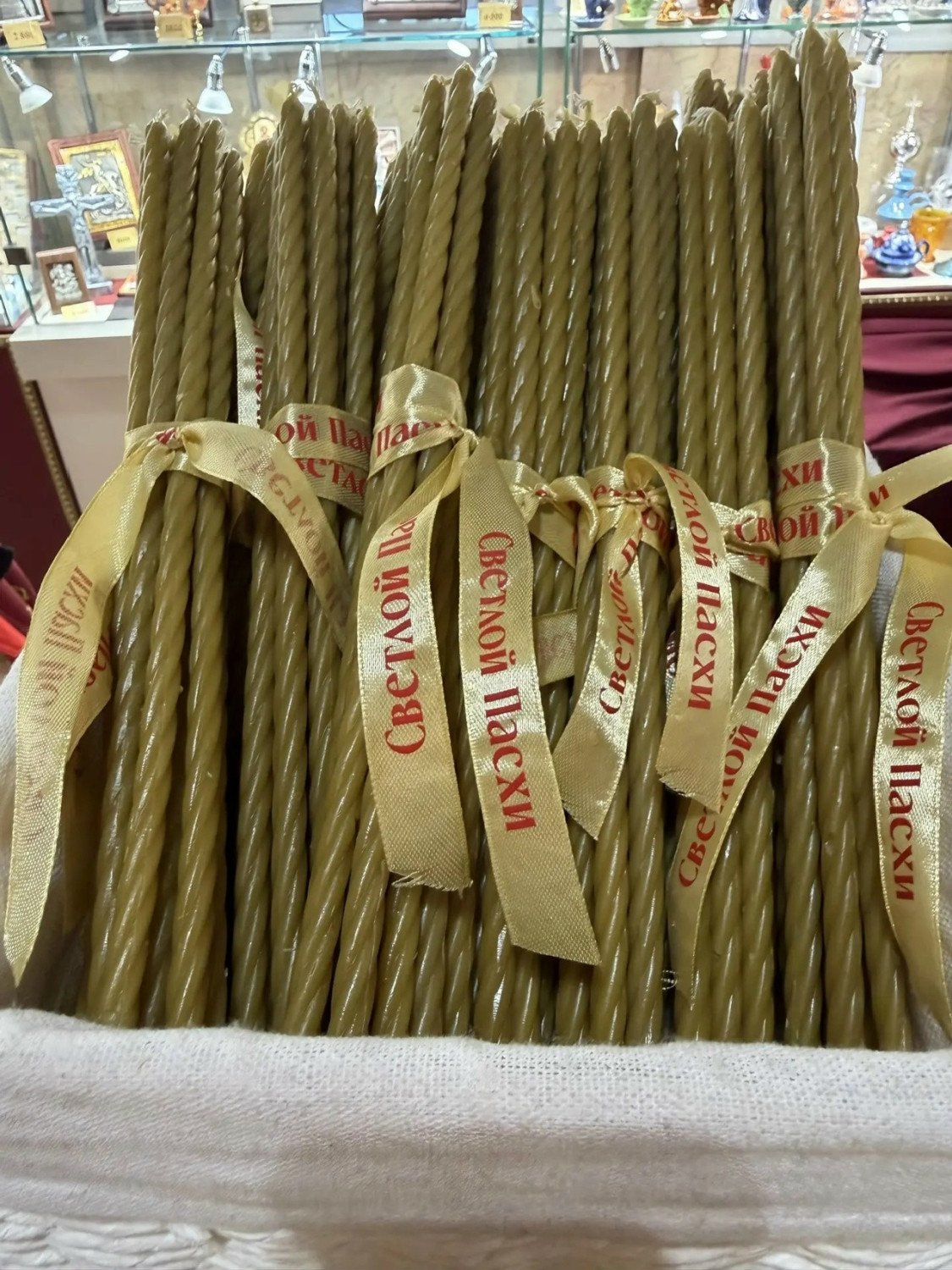 Свеча находится в центре храма. Для вашего удобства в лавках приготовлены связанные пучки свечей. Опаляйте их, тушите и несите в свои дома, дарите близким, крестникам.